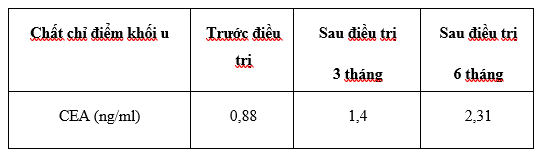 Xét nghiệm chất chỉ điểm u: Nồng độ CEA nằm trong giới hạn bình thuờng, ổn định qua các đợt điều trị: