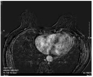 Hình 6. Hình ảnh cộng hưởng từ tuyến vú có tiêm tương phản: Hiện không thấy tổn thương nghi ngờ ác tính trên phim cộng hưởng từ tuyến vú hay bên/ Sau điều trị có đáp ứng hoàn toàn.