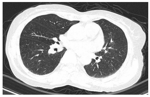 Hình 9: Chụp CT lồng ngực có tiêm thuốc cản quang sau điều trị không phát hiện hình ảnh nghi ngờ thứ phát.