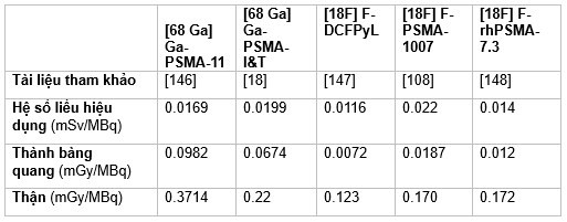 Bảng 7: Liều lượng bức xạ đối với các phối tử PSMA