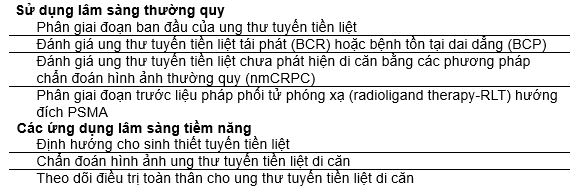 Bảng 1: Các chỉ định cho PSMA-ligand PET/CT