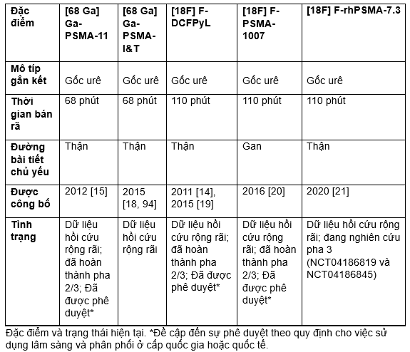 Bảng 3: Các phối tử PSMA cho hình ảnh PET/CT