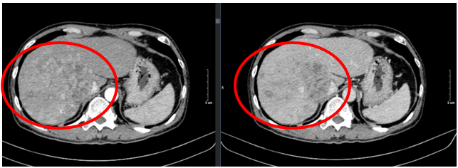 Đánh giá theo tiêu chuẩn mRECIST 1.1, bệnh đáp ứng một phần (PR – Partial Responce). Hiện tại, bệnh nhân tiếp tục được điều trị với lenvatinib liều 8mg/ngày.