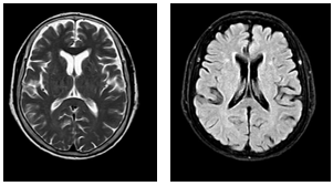 - Chụp MRI sọ não có tiêm thuốc cản quang: Hình ảnh thoái hóa myelin quanh não thất bên và trung tâm bán bầu dục hai bên. Dày nhẹ niêm mạc xoang sàng hai bên. Hiện không thấy nốt ngấm thuốc bất thường nhu mô não.