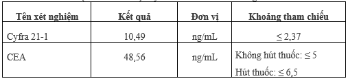 Các chất chỉ điểm u (Tumor marker): Cyfra 21-1 và CEA đều tăng:
