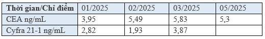 - Các chất chỉ điểm khối u liên quan đến ung thư phổi CEA có xu hướng giảm, Cyfra 21-1: tăng nhẹ