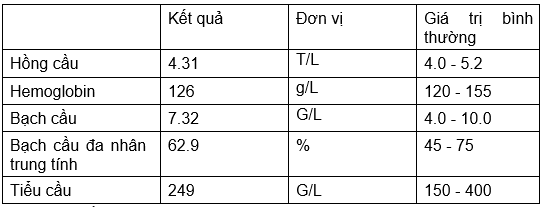→ Các chỉ số máu của bệnh nhân trong giới hạn bình thường.