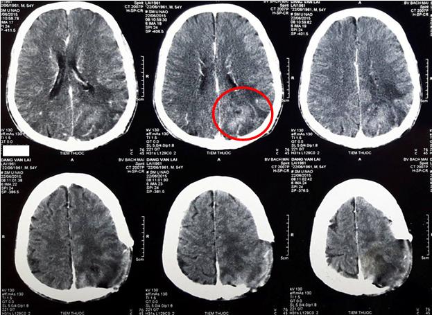 * Bệnh cảnh: Bệnh nhân Đặng Văn L., Nam, 54 tuổi. Địa chỉ: Yên Lạc, Vĩnh Phúc. Nhập viện vào Trung tâm Y học hạt nhân và Ung bướu-Bệnh viện Bạch Mai ngày 21 tháng5 năm 2015 vì lý do đau đầu kèm yếu nửa người phải.