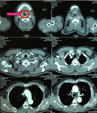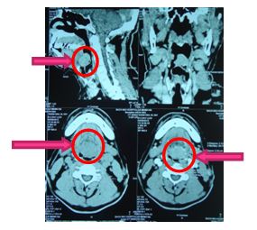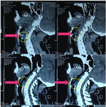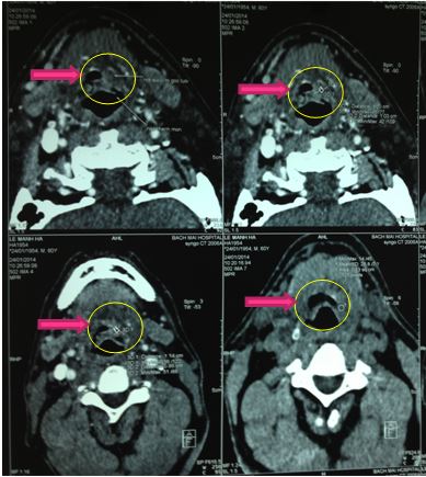 Hình 2. Hình ảnh khối u trên hình ảnh cắt lớp vi tính 64 dãy vùng hầu họng