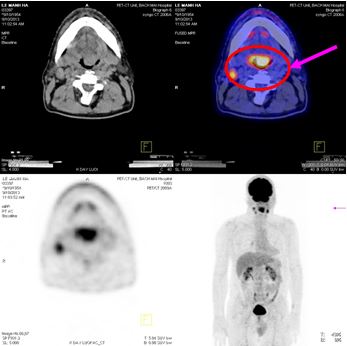Hình 3. Hình ảnh khối u vùng đáy lưỡi di căn hạch cổ hai bên trên hình ảnh PET/CT