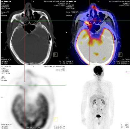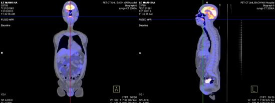 Bệnh nhân được chụp PET/CT với hai mục đích: đánh giá mức độ xâm lấn, di căn của khối u và dùng hình ảnh PET/CT để mô phỏng lập kế hoạch xạ trị