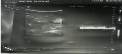 Hình 1. Hình ảnh siêu âm Doppler mạch chi dưới bên trái