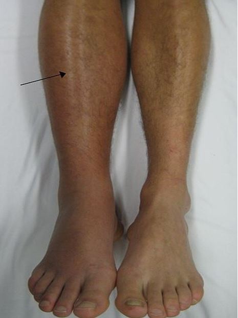 Hình 4. Hình ảnh chân bệnh nhân bị khối tĩnh mạch sâu chi dưới bên phải.