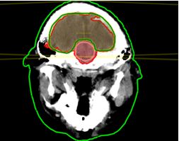 Bệnh nhi được chẩn đoán: U não, nghĩ nhiều là u nguyên bào tủy. Bệnh nhân đã được phẫu thuật lấy u tối đa sau đó xạ trị toàn não và tủy 36GY, tập trung thêm liều xạ trị vào tổn thương u đạt liều tại u là 56,8Gy.