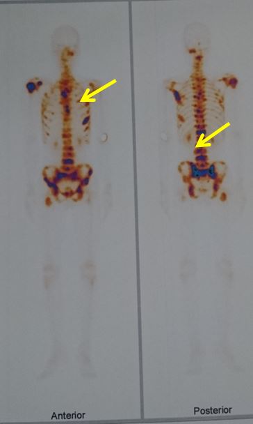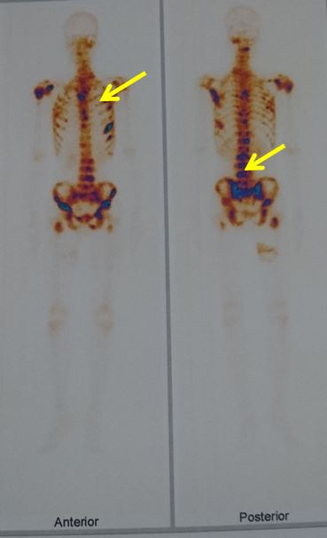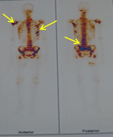 Hình 3: Hình ảnh tổn thương xương đa ổ qua xạ hình xương