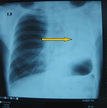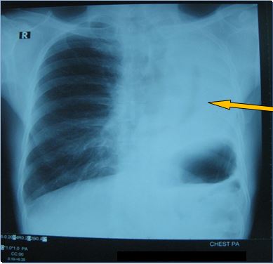 - X- Quang tim phổi thẳng có hình ảnh đám mờ toàn bộ thùy trên phổi trái: