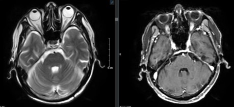 Hình 4: Hình ảnh chụp cộng hưởng từ sọ não trước và sau điều trị