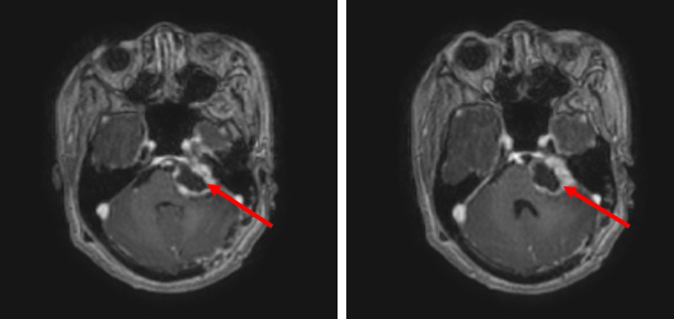 Chẩn đoán: U dây thần kinh số VIII bên trái đã phẫu thuật.