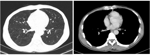 Hình 2: Hình ảnh chụp cắt lớp vi tính lồng ngực chưa phát hiện tổn thương nghi ngờ thứ phát