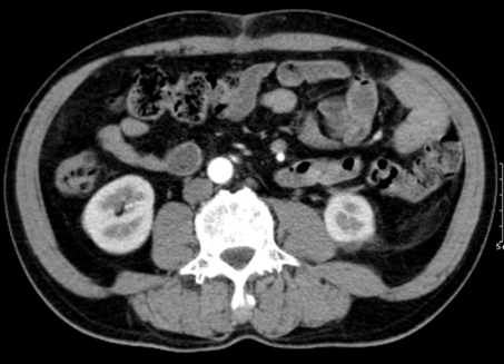Bệnh sử: Bệnh nhân đi khám thoát vị bẹn tình cờ phát hiện u sau phúc mạc, không có biểu hiện đau bụng, đại tiểu tiện bình thường, không gầy sút cân.