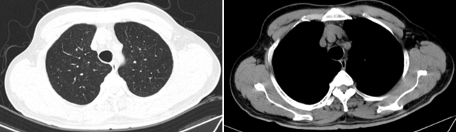 Hình 2: Hình ảnh chụp cắt lớp vi tính ngực: chưa phát hiện tổn thương nghi ngờ thứ phát