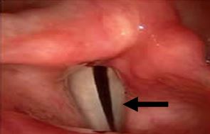 Nội soi thanh quản: Liệt dây quặt ngược trái (dây thanh trái không di động).