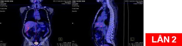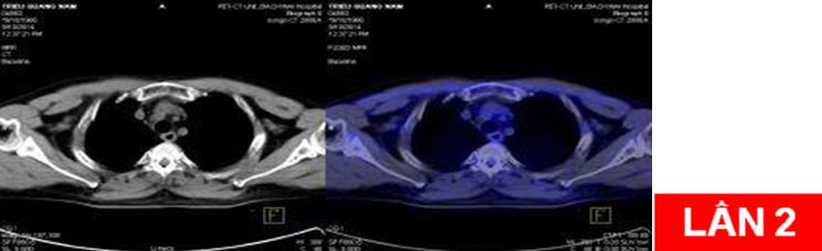 Bệnh nhân:chụp PET/CT lần 2 đánh giá sau 6 chu kỳ hóa chất (có đối chiếu với lần chụp trước khi điều trị).