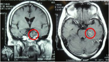Bệnh nhân có các biểu hiện đau nửa đầu trái, tê mặt trái, mờ mắt trái. Tháng 12 năm 2010 bệnh nhân vào khám và điều trị tại Trung tâm Y học hạt nhân và Ung bướu Bệnh viện Bạch Mai.