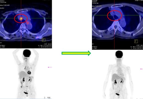 Hình ảnh PET/CT trước và sau 6 chu kỳ điều trị với Cisplatin-Pemetrexed