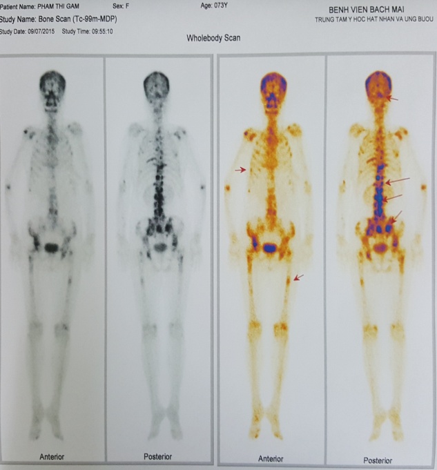 Dưới đây là một ca lâm sàng ung thư vú di căn đã được điều trị tại Trung tâm Y học hạt nhân và Ung bướu Bệnh viện Bạch Mai: