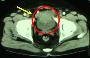 Bệnh cảnh: Bệnh nhân Ngô Viết Th., nam 73 tuổi, Nhập viện vào Trung tâm Y học hạt nhân và Ung bướu-Bệnh viện Bạch Mai ngày 04 tháng 7 năm 2012 vì lý do đi khám sức khỏe định kỳ siêu âm phát hiện tổn thương u vùng hạ vị (trong ổ bụng) đường kính 10cm.