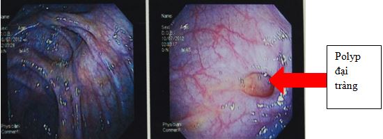 + Kết quả nội soi đại tràng cho thấy: có một số polyp đại trực tràng (mũi tên đỏ) và một số túi thừa đại tràng