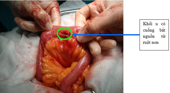 Ngày 13 tháng 7 năm 2012 bệnh nhân được tiến hành phẫu thuật cắt bỏ tổn thương u. Kết quả cho thấy: gan không có tổn thương di căn, hạch mạc treo không sờ thấy; khối u nằm dưới rốn đường kính khoảng 12cm, dính với phúc mạc vùng hố chậu phải và phúc mạc trên đáy bàng quang. Khối u xuất phát từ thành bên đoạn giữa ruột non, có cuống rất nhỏ khoảng 1cm. Phẫu thuật viên đã tiến hành cắt bỏ tổn thương u và một phần ruột non.