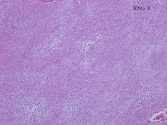 + Kết luận: U tế bào hình thoi ác tính nghĩ nhiều đến U mô đệm ruột non (GIST: Gastrointestinal stromal tumors) đề nghị nhuộm thêm hóa mô miễn dịch CD117, CD34, S100, Vimentin, Desmin, GFAP.