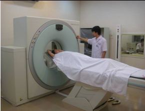 Bệnh nhân được chụp CT mô phỏng để lập kế hoạch xạ trị với kỹ thuật IMRT.
