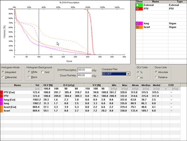 Đồ thị DVH phân bố liều chiếu xạ vào khối và các cơ quan cần bảo vệ