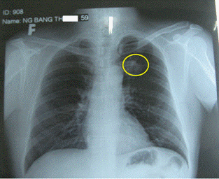 Hình 1: Phim X-quang tim phổi: có đám mờ phổi trái
