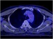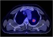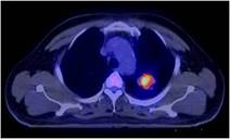 Hình 3: Hình ảnh chụp PET/CT: có khối u thuỳ trên phổi trái với kích thước 2x3cm,
