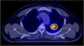 Trong xạ trị, việc xác định chính xác đích điều trị là yếu tố quan trọng, quyết định hiệu quả điều trị. Nhờ vào hình ảnh PET/CT mà chúng tôi có thể xác định chính xác tổn thương, thể tích sinh học (Biological Target Volume: BTV) của khối u bên cạnh các thể tích thông thường như GTV, CTV, PTV. Từ đó xác định được liều xạ cao nhất vào khối u đồng thời hạn chế ở mức thấp nhất ảnh hưởng đến các cơ quan quan trọng lân cận xung quanh như tim, phổi lành xung quanh...