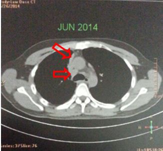 Sau đó được chuyển đến Trung tâm Y học hạt nhân và ung bướu – Bệnh viện Bạch Mai. Tại đây bệnh nhân đã được chẩn đoán là ung thư phổi. Mô bệnh học: Ung thư biểu mô tuyến, không có đột biết gen EGFR.