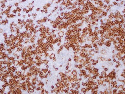 Hình ảnh nhuộm hóa mô miễn dịch dương tính với CD20.