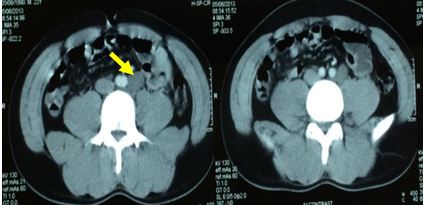 Hình ảnh hạch cạnh động mạch chủ bụng, kích thước 2-3cm.