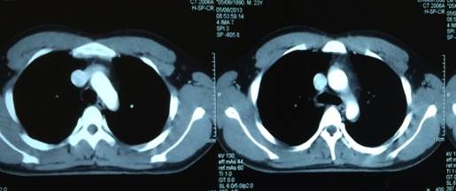 Hình ảnh chụp CT ngực không phát hiện hạch trung thất.