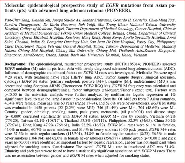 1.Đánh giá các tỉ lệ đột biến EGFR ở những bệnh nhân mới bị ung thư phổi loại biểu mô tuyến tại châu Á.