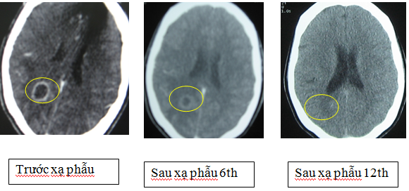 Đánh giá kết quả điều trị sau 12 tháng : 86% bệnh nhân hết đau đầu, 92% không còn buồn nôn và nôn, 26% còn yếu ½ người, 100% hết động kinh. Riêng có 2/40 (5%) trường hợp khối u ở sát thân não và gây giãn não thất, bệnh diễn biến nặng, liệt 2 chi dưới, giảm thị lực, cả 2 trương hợp này chúng tôi phải chuyển ngoại phẫu thuật dẫn lưu não thất.