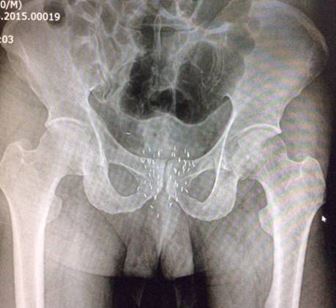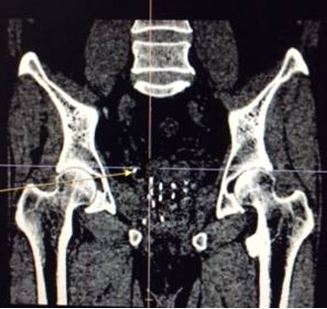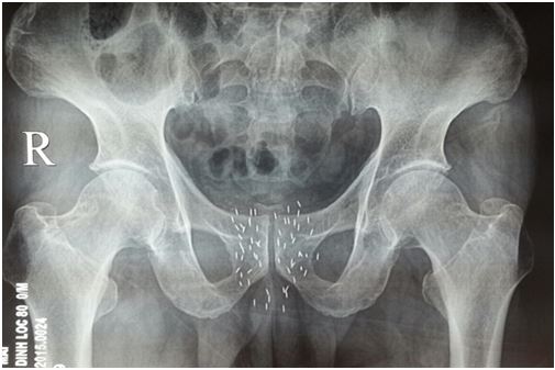 - Chụp XQ khung chậu thẳng: vị trí kim được cắm tốt