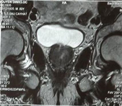 - Siêu âm, MRI tiểu khung tiền liệt tuyến to khoảng 25 g, khối u TLT chưa xâm lấn túi tinh