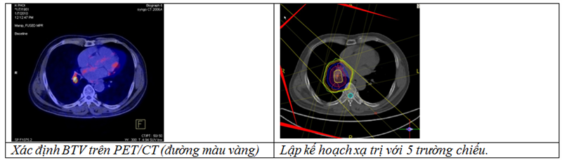 Trong số 30 bệnh nhân thuộc nhóm đối tượng nghiên cứu, có 6 bệnh nhân được lập kế hoạch mô phỏng xạ trị trên hình ảnh PET/CT. PET/CT giúp xác định thể tích khối u sinh học: BTV (biological tumor volume) là thể tích khối u ở mức độ chuyển hóa, sớm và chính xác hơn thể tích khối u thô: GTV (gross tumor volume) mà chúng ta nhìn thấy trên CT hoặc MRI. Từ đó việc lập kế hoạch xạ trị chính xác hơn và mang lại hiệu quả cao hơn trong điều trị. Trong một số trường hợp, trên CT không thể phát hiện ra tổn thương, PET/CT giúp xác định chính xác vị trí tổn thương để lập kế hoạch xạ trị.