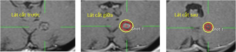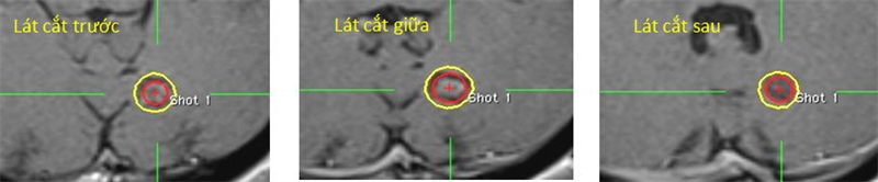 Hình 1: Các kế hoạch đặt shot ở mỏm đầu, giữa và cuối của khối u