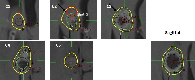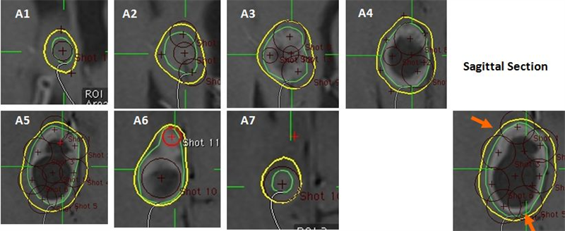 Mười kế hoạch trên cho thấy sự xuất hiện đường đồng liều 50% khi 2 shot 8mm được đặt gần kề nhau. Các hình cầu ban đầu hợp lại với nhau tạo thành “hình số 8” rồi dần trở thành một hình tròn đơn do sự tái chuẩn hóa.